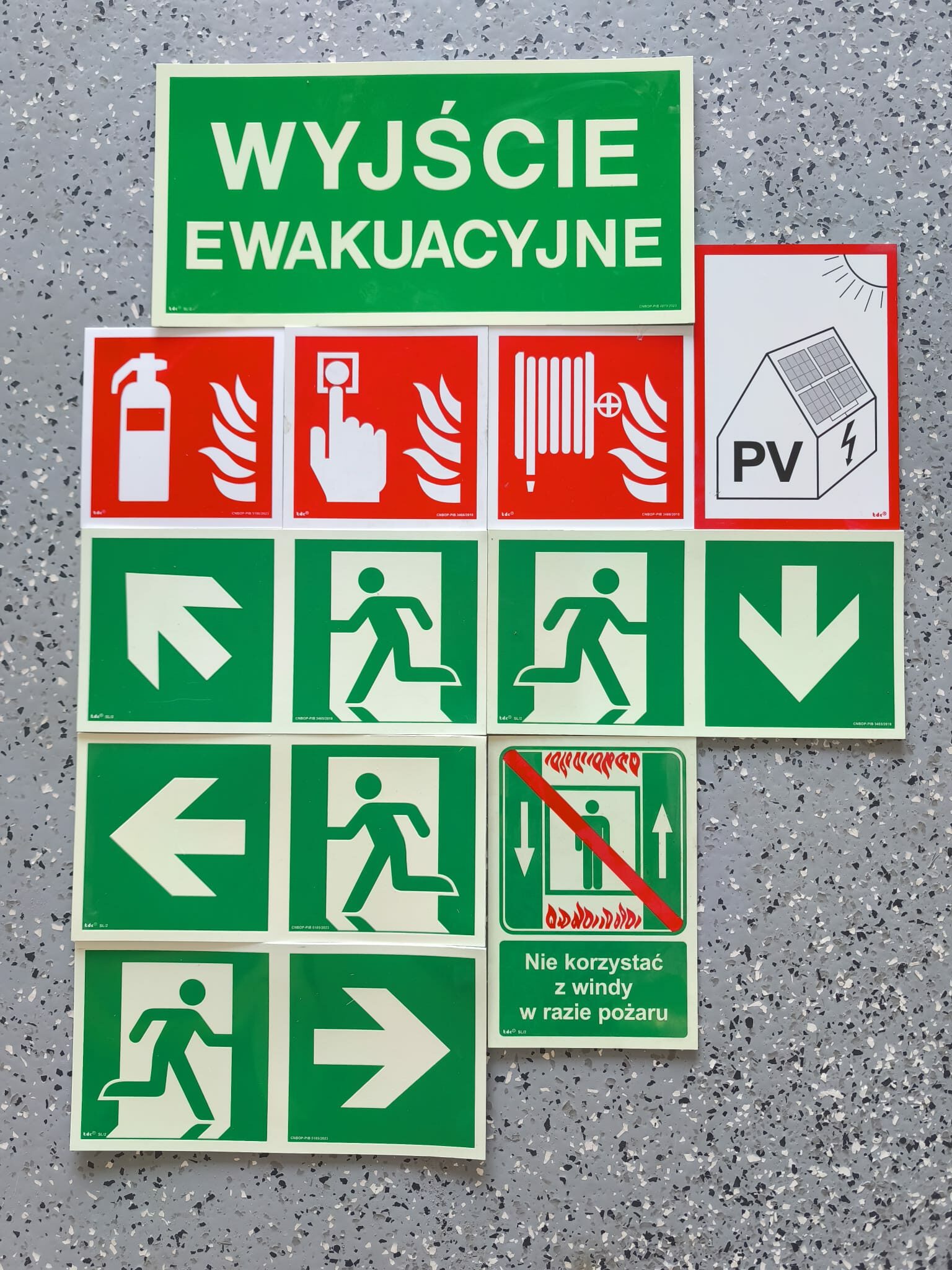 Rozmieszczanie znaków podręcznego sprzętu gaśniczego oraz oznakowanie budynku w znaki ewakuacji